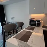 Das am Strand Long Beach, Iskele, Grand Sapphire Resort - Pool View Luxury Studio verfügt über einen Balkon, eine Sitzecke und eine voll ausgestattete Küche und Annehmlichkeiten wie eine Klimaanlage. In dieser Unterkunft steht den Gästen ein Badezimmer mit einem Haartrockner, einem Wäschetrockner und Handtüchern zur Verfügung. Außerdem gibt es hier eine getrennte Toilette, eine Dusche und eine Waschmaschine.